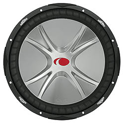 Визитной карточкой фирмы остаётся двойная строчка по стыку диффузора с подвесом, новая серия CompVR без неё тоже не обходится. В данной модели катушка состоит из двух 2-омных секций, но есть в серии и модификации с секциями по 4 Ом. По гофру подвеса шириной 25 мм проходят наклонные вытянутые выступы, позволяющие придать ему требуемую жёсткость. Материал, из которого изготовлена корзина, достаточно толстый, но и он не лишён низкочастотных резонансов — у «пятнашек» с этим вообще проблем больше, чем у динамиков любого другого калибра. Диффузор составной: сверху — шаровой сегмент из полипропилена с металлизацией и фирменным рельефом, напоминающим осьминога, снизу — переходной конус из того же вездесущего материала. Такие конструкции отличаются повышенной жёсткостью и увеличенной массой. Магнит габаритов 167 х 40 мм закрыт толстым резиновым чехлом. Диаметр осевого отверстия 25 мм. Охлаждению катушки способствуют восемь сдвоенных окошек, которые расположены, как всегда, между центрирующей шайбой и верхней шайбой магнитной системы. Две пары зажимов равномерно распределены по окружности корпуса. Провода к звуковой катушке проложены по первому способу, но они имеют C-образную форму и потому при движении диффузора работают на кручение, а не на изгиб.