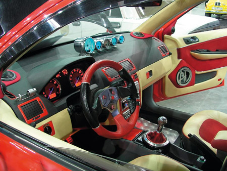 А теперь о другом. По пунктам 4.4.1 и 4.4.2 (отвечающим за дизайн салона и багажного отделения) и 4.5.2 — 4.5.6 (характеризирующие мастерство исполнения), здесь все связано между собой. Автомобиль имеет классическую (если такой термин можно употребить) соревновательную схему: трёхполосный фронт, сабвуфер, усилители двухканальные, их четыре, усиление поканальное полностью. Два Е.О.S. Mоzаrt 1 работают побортно (этим сейчас не удивишь уже никого) на CЧ/BЧ, один из них настроен на мидбасы, другой — на сабвуфер.