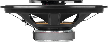 При изготовлении диффузора использовался материала со специальным наполнителем, он обладает сероватым оттенком с неким металлическим отблеском. В качестве подвеса здесь используется ткань с шириной 12 мм. Что касается звонкости корзины, то она находится на достаточно высоком уровне, что в принципе является характерной особенностью «блинов». Диаметр и толщина магнита составляют 90 и 15 мм соответственно. В качестве уплотнительного кольца используется плотный картон. Защитная решетка и рамка представляют собой единую конструкцию. Конструкцией автоакусти не предусмотрено звукопоглощающего кольца. За счет увеличенного диаметра звуковой катушки данные автомобильные динамики способны выдерживать значительно большие перегрузки, чем фронты. Для подвода проводников к высокочастотникам использовался второй способ, при котором провода идут через главную стойку, а не через магнит. Размер главного твитера составляет 50 мм, в качестве материала использовавшегося при его изготовлении использовалась целлюлоза. Супертвитер построен на базе пьезокерамики. Подключение к автомагнитоле – стандартное.