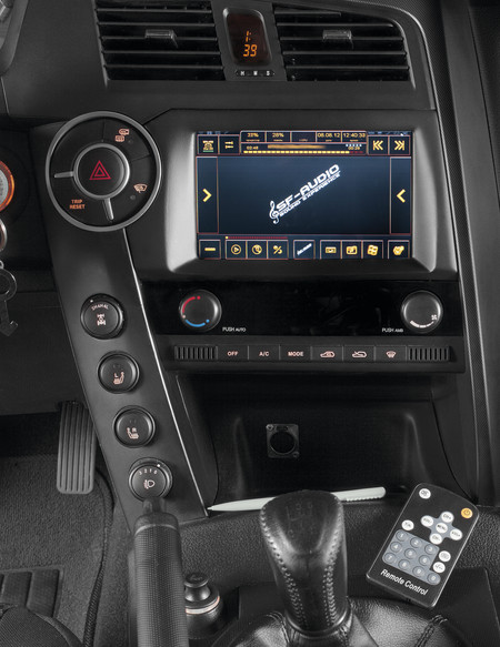 Для управления компьютером и отображения данных имеется сенсорный монитор AVIS 6”. Передача видеосигнала осуществляется по VGA-кабелю, а обмен информацией проходит на материнской плате через USB-порт. К композитному видеовходу подключаются камеры заднего вида, которые активируются с помощью включения задней передачи. Монитор, интегрированный на месте штатной головки, для чего сделана переходная рамка. Вывод ИК-датчика управления монитором сделан по соседству в воздуховод.