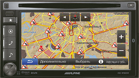 Мультимедийные навигационные станции Alpine, таких моделей, как Alpine INA-W910R, Alpine INE-W920R, Alpine INE-W928R комплектуются TMC-тюнером встроенного типа. Данный модуль предназначается для приема данных относительно загрузки автодорог в режиме online. В отличие от идентичных технологий приема информации посредством GPRS через Интернет, разработка TMC не подразумевает подключения SIM-карты, модема, каких-то расходов. В даннойже системе находит применение FM-канал — информация добавляется в сигнал определенных радиостанций идентично RDS-информации. Получаемые данные предоставляют возможность навигационной станции фирмы Alpine произвести оптимальные расчеты маршрутов и сэкономить нервы и время автомобилистов.