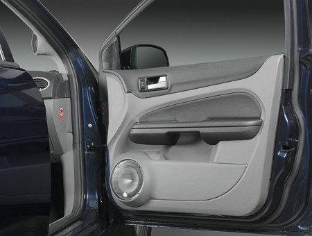 Фронтальная акустика была взята самая лучшая из той, которая доступна на сегодняшний день. Высокочастотники Morel MT-23, мидбасы Hertz ML 165 и серединки Hertz HL 70. Стойки лобового стекла Фокуса, также как и в ситроене, были переоборудованы под пищалки и среднечастотники. Что касается мидбасов, то для них пришлось делать практически новые посадочные места, так как штатные находились очень низко. Также пришлось увеличить посадочную глубину, сделано это было при помощи оборудования небольшого подиума, который занял практически весь дверной карман, однако это того стоило. После того как все работы по установке мидбаса были завершены стало понятно что новый дизайн двери оказался не менее удачным чем тот который предлагали дизайнеры компании Форд.