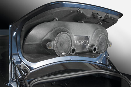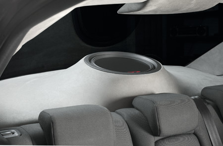 Что же касается сабвуфера, то здесь решение было достаточно оригинальным. Так как автомобиль небольшой, и свободное место в нем на вес золота, было решено сделать сабвуфер съемным, тем более что и без него басов хватает. Разработчик сабвуфера тот же что и у остальных динамиков. Его общий объем составляет 26 л, головка диаметром 12-дюймов.