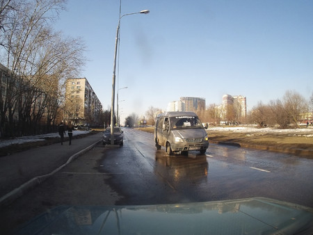 В фоторежиме разрешение позволяет легко и полностью считывать номер «Газели» на дороге и разбирать за столбом с левой стороны код региона Hyundai.
