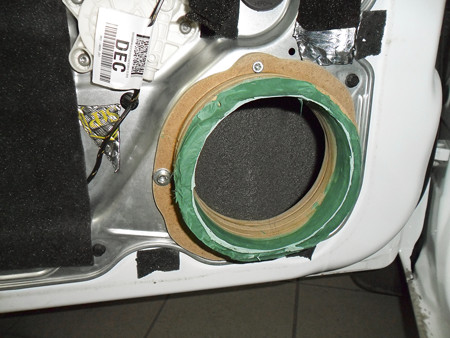 Были внесены некоторые коррективы в общее оформление подиумов, которые были применены мной для расположения фронтальных акустических устройств. В некоторой степени мне удалось частично приблизиться к основным аспектам заводского оборудования, но при этом характеристики данного устройства более четкие. Обшивку с дверной конструкции пришлось частично убрать. Пришлось немного поколдовать и с головками. Их пришлось немного усовершенствовать.