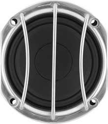 2. Должный уровень защиты, благодаря которому могут работать с акустической системой и автомагнитолы, обеспечен должным образом. Так, была использована металлическая корзина, которая оснащена вентиляцией, а также звуковой катушкой. Также применена защитная решетка, которую можно убрать, если в этом возникнет необходимость. Помимо этого, в состав системы входит несколько отверстий, которые предназначены для крепления.