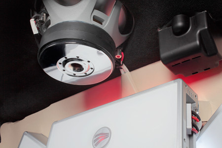 Для того чтобы выполнить монтаж саба, была использована именно задняя полка, оформленная соответствующим образом. Для фронтального аспекта специалисты решили подготовить тщательную комплектацию, чтобы минимизировать вероятность формированию довольно серьезных проблем. Монтаж же самих усилителей осуществлялся на специально подготовленную стенку. Именно она позволяет без особых проблем выделять место в салоне автомобиля, а также обеспечивать его подсветку. Для дополнительного усиления специалистами был применен уникальный прием, а также соответствующего качества профиля.