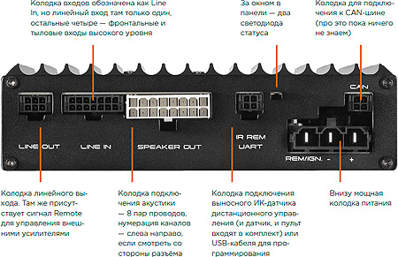 выступают входя уровней громкоговорителей, а дополнительные – RCA. Благодаря способностям процессора,