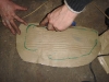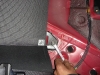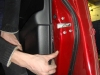 После завершения работ с внутренним слоем приступается к заделке заводских монтажных отверстий. Это требуется для того, чтобы можно было получить из дверей акустическую колонку замкнутого объема, чтобы кроме шумоизоляции можно было улучшить звук динамиков. Для этого используется шумоизоляция БиМаст Бомб. При помощи маркера и бумаги выполняются лекала, по которым вырезают БиМаст Бомб. Его вырезают на 2 см больше отверстия для надежного приклеивания к дверям (возможна полная проклейка всей двери, однако это утяжелит двери). БиМаст Бомб приклеивается с помощью строительного фена. При нагревании он плотно разглаживается по поверхностям (весьма плотный материал, обретающий при нагревании эластичность).