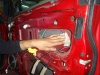 Дверные поверхности, на которые планируется нанесение шумоизоляции, обезжириваются с помощью обезжиривателя. Как правило, в автомобилях уже есть заводская дверная шумоизоляция, нова наносится поверх заводской.