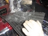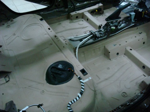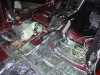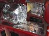 После удаления обшивки салона наносится первый шумоизоляционный слой «Вибропласт М2». Им проклеивается вся поверхность (крылья, арки, пол).