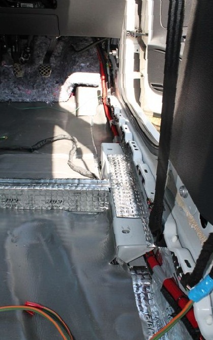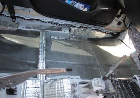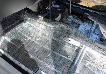 следующего слоя утепляющего шумоизолятора, уложенного на заводе, выделяется