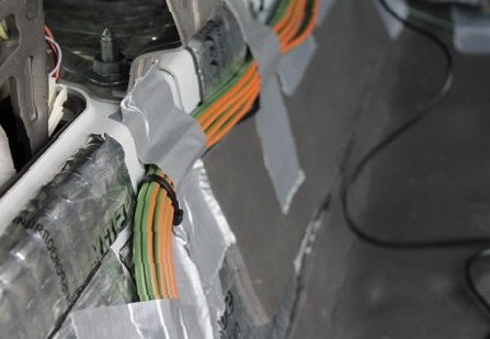 прикрепленная скотчем к полу проводка легла по левому борту.