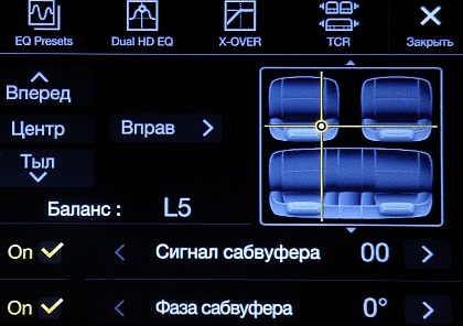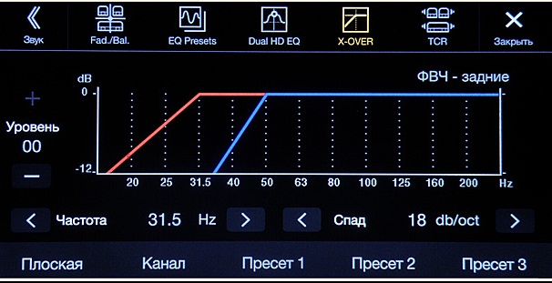 настройка кроссовера, предустановленного и пользовательского эквалайзера,