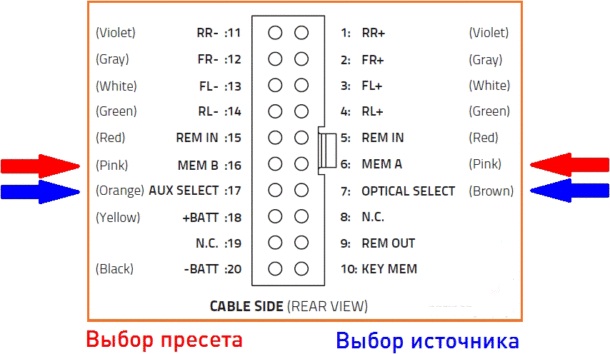 подключения к штатной магнитоле, допускается суммирование тех сигналов, которые